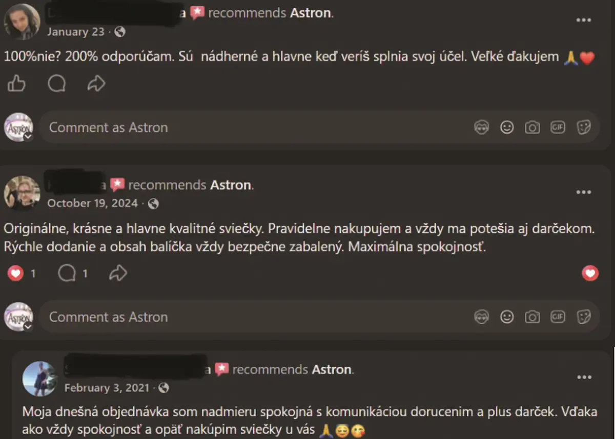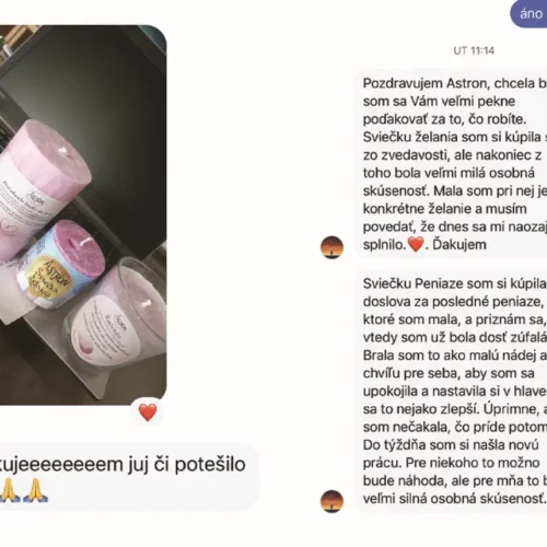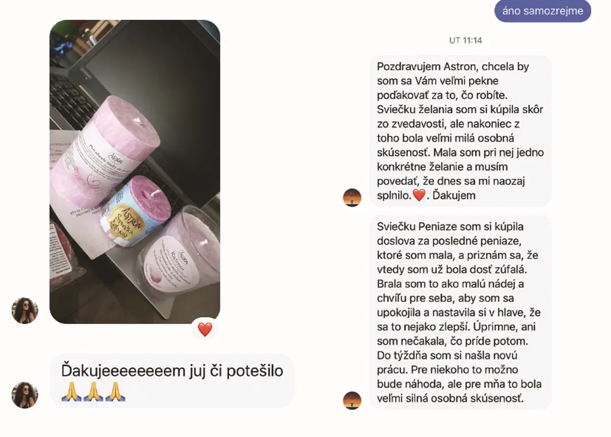 Naše sviečky fungujú tam, kde zlyhali knihy, meditácie či obyčajné produkty – dávajú vám rituál, plameň a pocit, že vaša energia je vo vašich rukách.
